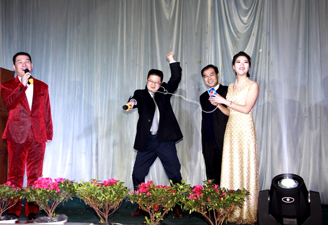 ?精彩演出:各部門員工精心安排、巧妙構(gòu)思,經(jīng)過艱苦的排練,最終奉獻(xiàn)了一場用7節(jié)目和兩個互動游戲串聯(lián)的精彩演出。個性張揚(yáng)、緊隨時尚的天辰員工以自己獨(dú)特地方式展示著青春與激情。節(jié)目中除了有活力四射的舞蹈、刷新三觀的相聲,也有深情的員工父子器樂合奏,更有有給力的合唱與歌伴舞。期間歌舞不休,高潮不斷,掌聲和笑聲貫穿始終。