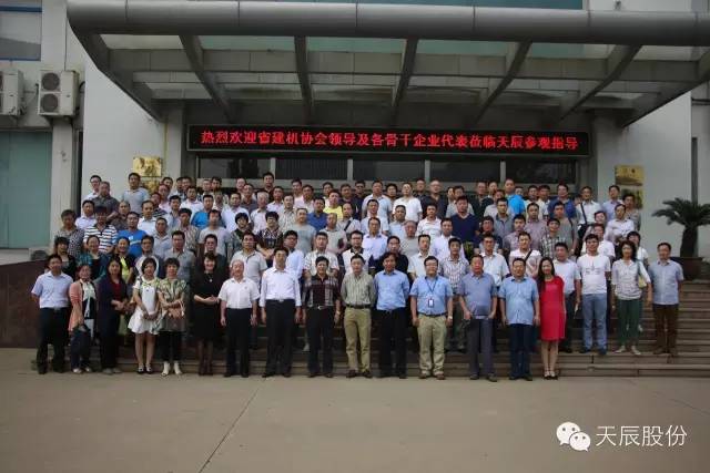 下午,山東省建設(shè)機(jī)械行業(yè)理事長(zhǎng)張永光率骨干企業(yè)代表、各市行管部門主要負(fù)責(zé)人約180余人的考察團(tuán),在天辰股份董事長(zhǎng)侯秀峰、常務(wù)副總亓愛林的陪同下,參觀了天辰工業(yè)園。