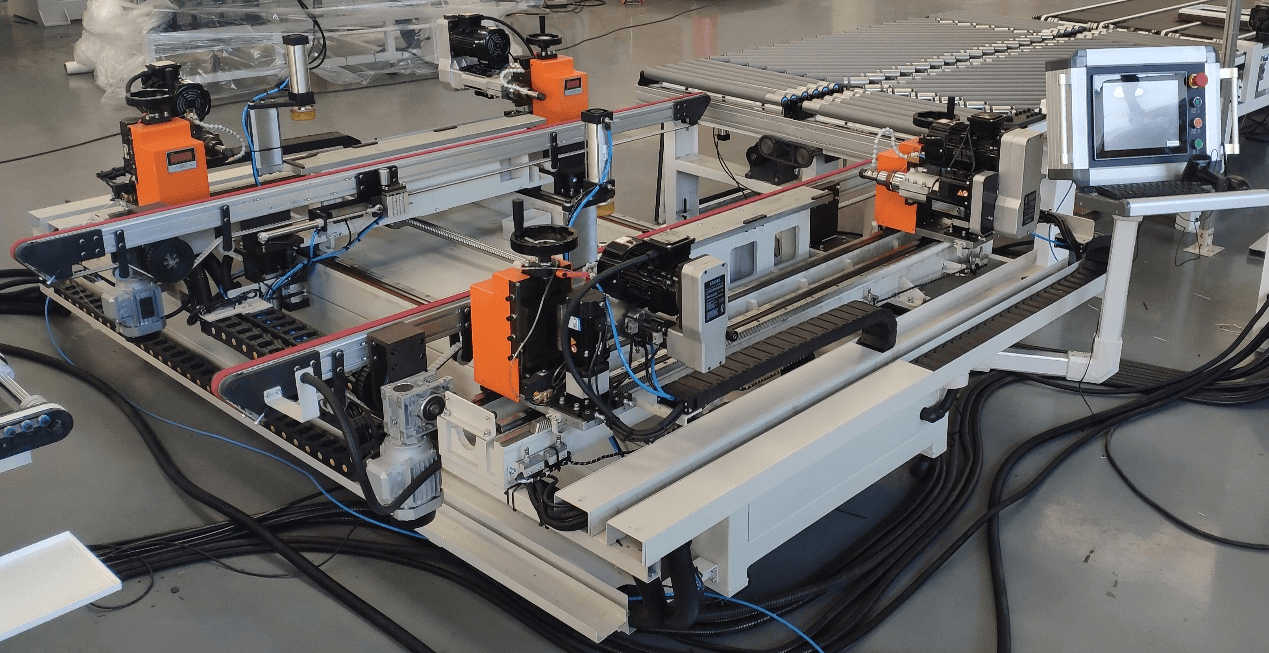 ☆?設(shè)置有自動傳輸帶裝置,可連入窗扇組裝線使用,實(shí)現(xiàn)窗扇的自動送入、自動定位、自動鉆孔;