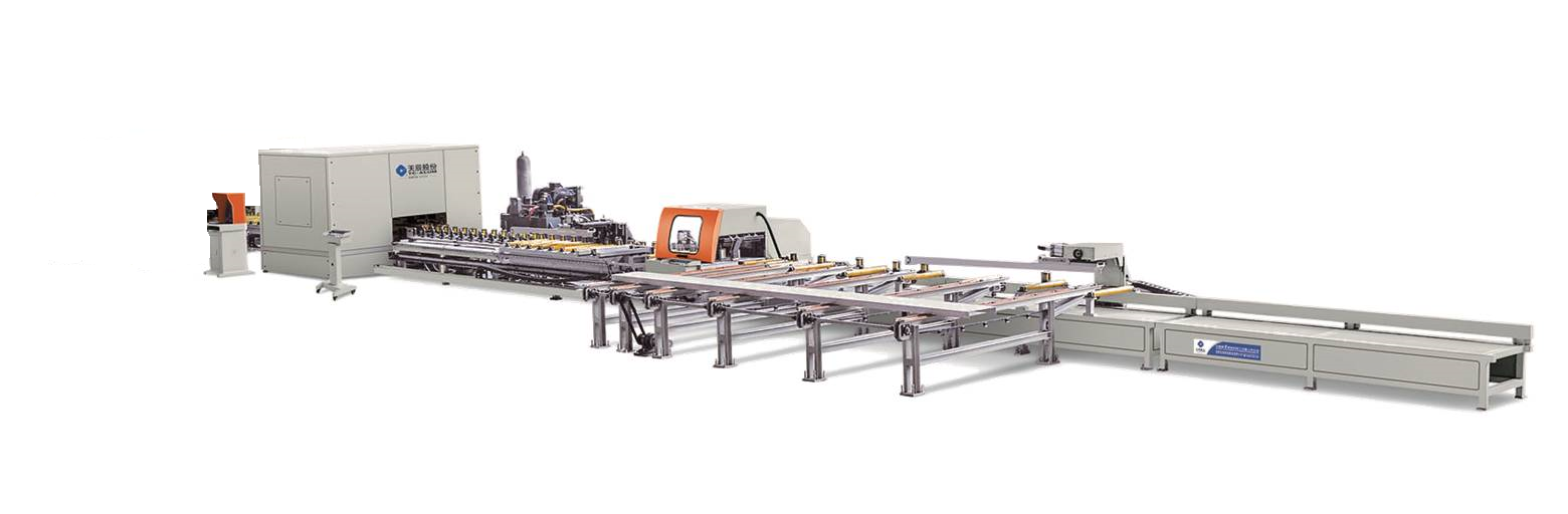 本生產線是一款用于對鋁合金模板C型板進行數(shù)控送料切割、兩側面沖孔加工的高效鋁模板自動生產線。